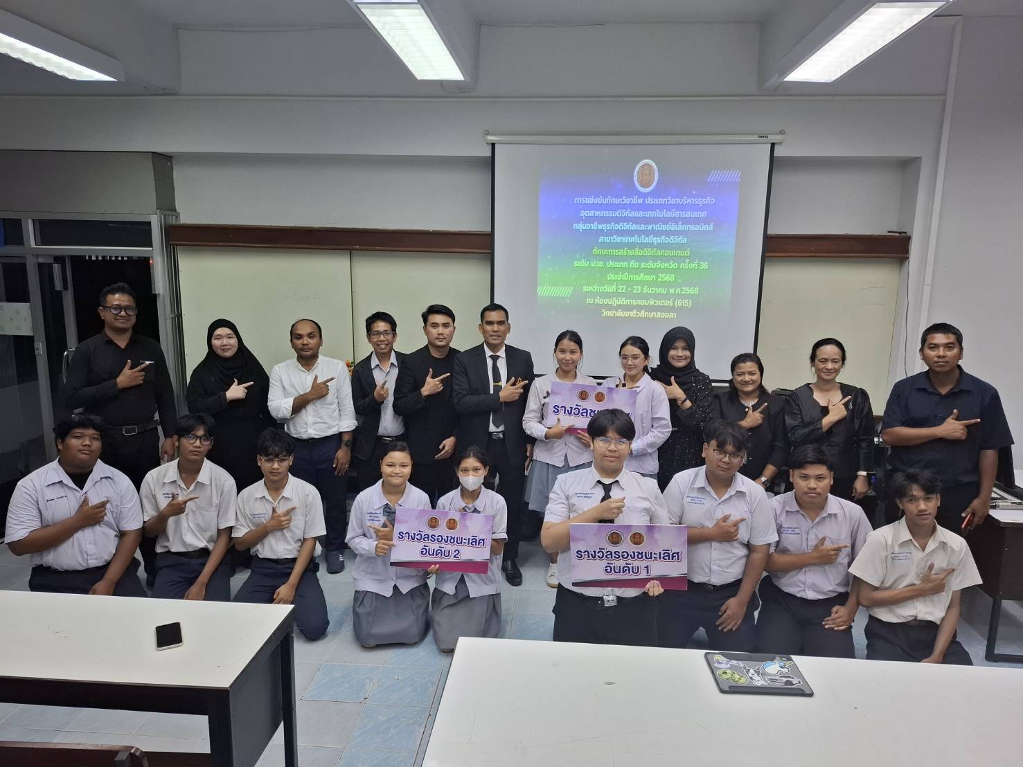 วันที่ 24 ธันวาคม 2568 นางอมรรัตน์ จันวัฒนะ ผู้อำนวยการวิทยาลัยอาชีวศึกษาสงขลา มอบหมายให้ นายกรีฑา ดิษโสภา รองผู้อำนวยการฝ่ายวิชาการ เป็นประธานในการมอบรางวัลการแข่งขันทักษะวิชาชีพ "ทักษะการสร้างสื่อดิจิทัลคอนเทนต์ ระดับ ปวช. ประเภท ทีม" ในงานประชุมวิชาการองค์การนักวิชาชีพในอนาคตแห่งประเทศไทย ระดับอาชีวศึกษาจังหวัดสงขลา ประจำปีการศึกษา 2568 ณ ห้องเรียนปฏิบัติการคอมพิวเตอร์ 615 วิทยาลัยอาชีวศึกษาสงขลา