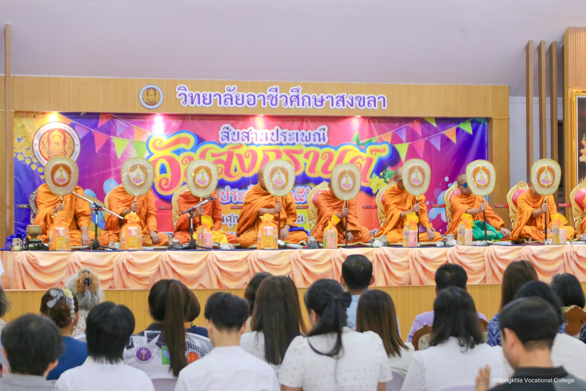 วันที่ 3 เมษายน 2569 นางอมรรัตน์ จันวัฒนะ ผู้อำนวยการวิทยาลัยอาชีวศึกษาสงขลา เป็นประธานในโครงการสืบสานประเพณีวันสงกรานต์ประจำปี 2569 ภายในกิจกรรมมีการตักบาตรข้าวสวย พิธีเจริญพระพุทธมนต์ เปลี่ยนผ้าสไบห่มองค์พระ ไหว้พระภูมิเจ้าที่ประจำวิทยาลัย ฯ และสรงน้ำพระพุทธรูป พร้อมทั้งมอบของที่ระลึก แก่ข้าราชการบำนาญ โดยมี ข้าราชการบำนาญ คณะผู้บริหาร ครู บุคลากรทางการศึกษา และตัวแทนนักเรียน นักศึกษา เข้าร่วมกิจกรรมโดยพร้อมเพรียงกัน ณ หอประชุมเฉลิมพระเกียรติ วิทยาลัยอาชีวศึกษาสงขลา